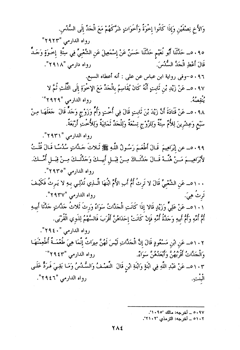 5102 - ابْنُ مَسْعُودٍ: إِنَّ الْجَدَّاتِ لَيْسَ لَهُنَّ مِيرَاثٌ إِنَّمَا هِيَ طُعْمَةٌ أطعمتها وَالْجَدَّاتُ أَقْرَبُهُنَّ وَأَبْعَدُهُنَّ سَوَاءٌ (¬1).