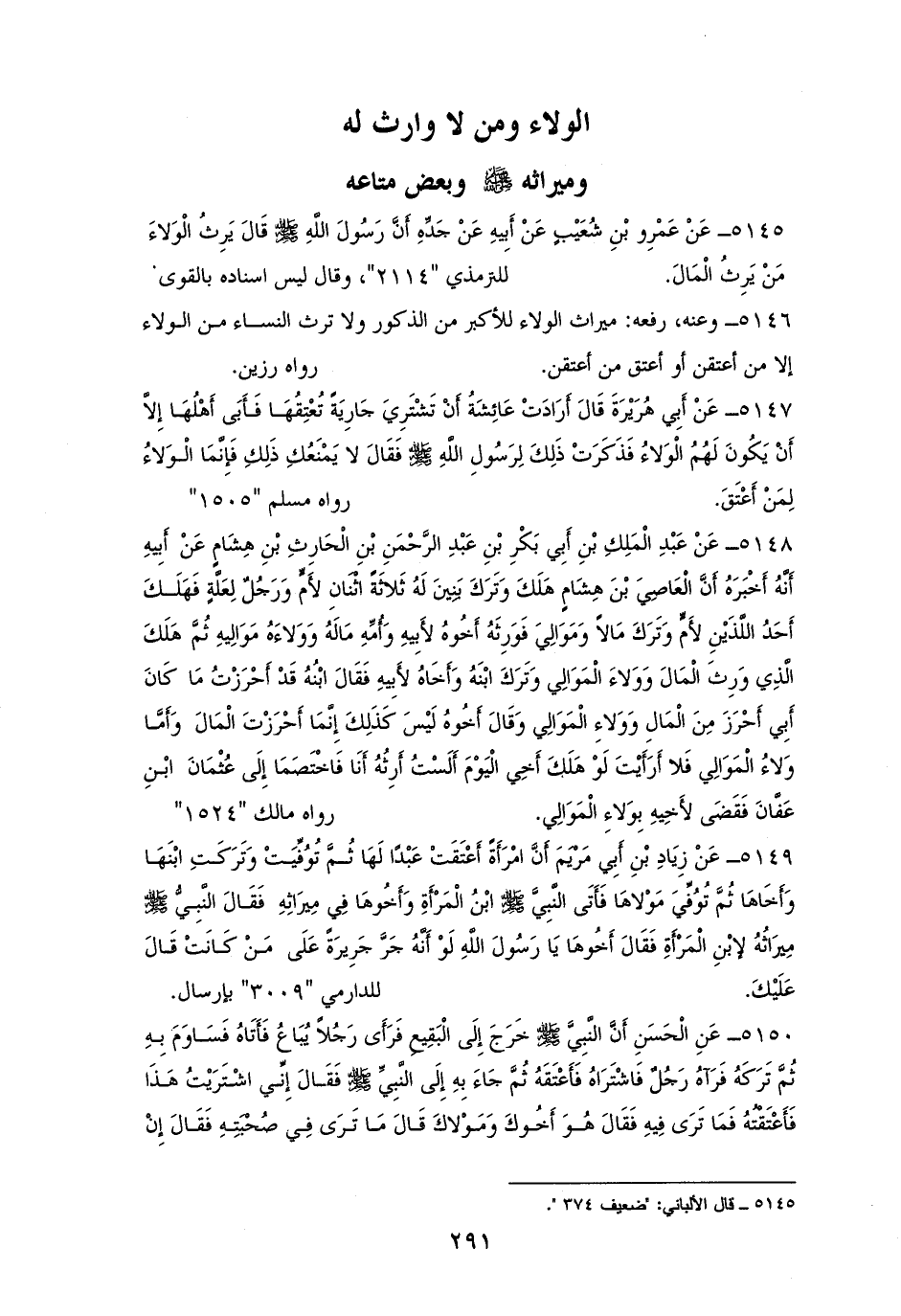 الولاء ومن لا وارث له وميراثه - صلى الله عليه وسلم - وبعض متاعه