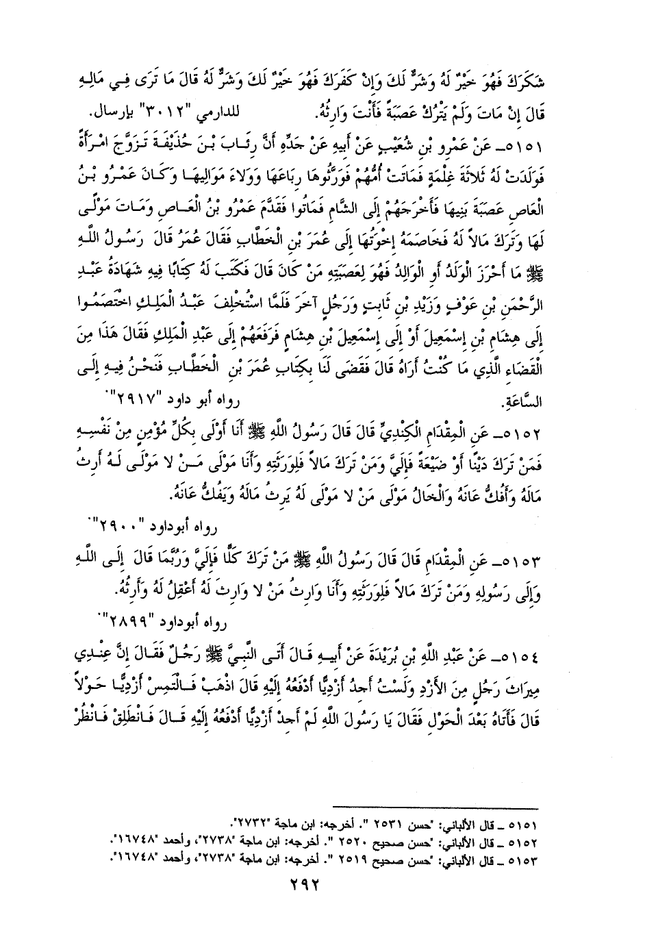 5154 - بُرَيْدَةَ: أَتَى رسولَ اللهِ - صلى الله عليه وسلم - رَجُلٌ، فَقَالَ: إِنَّ عِنْدِي مِيرَاثَ رَجُلٍ مِنَ الأَزْدِ وَلَسْتُ أَجِدُ أَزْدِيًّا أَدْفَعُهُ إِلَيْهِ، قَالَ: فاذْهَبْ فَالْتَمِسْ أَزْدِيًّا حَوْلاً فَأَتَاهُ بَعْدَ الْحَوْلِ)) فَقَالَ: لَمْ أَجِدْ أَزْدِيًّا أَدْفَعُهُ إِلَيْهِ، قَالَ: ((فَانْظُرْ