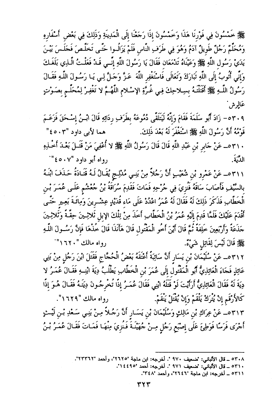 5310 - جَابِرُ رفعه: ((لا أُعْفِيَ مَنْ قَتَلَ بَعْدَ أَخْذِ الدِّيَةَ)). هما لأبي داود (¬1).