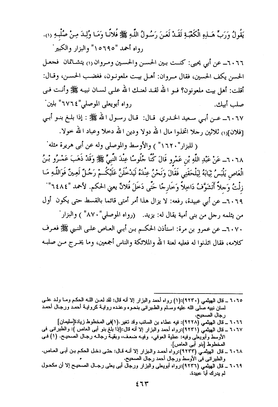 6068 - ابْن عَمْرٍو بن العاص رفعه: ((لَيَدْخُلَنَّ عَلَيْكُمْ رَجُلٌ لَعِينٌ فدخل الحكم. للبزار والأوسط بقصة)) (¬1).