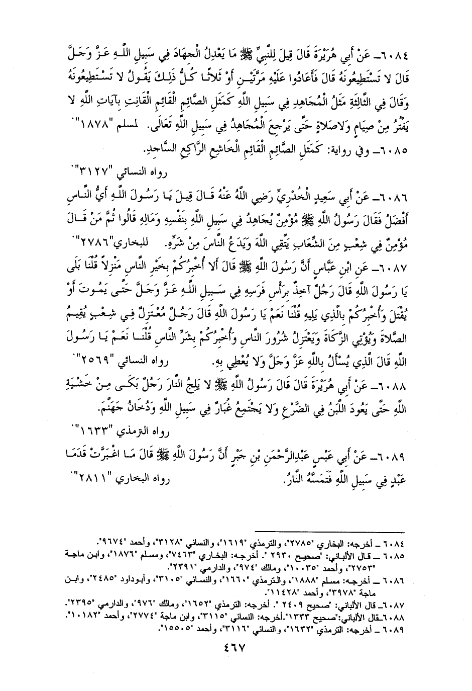 6089 - أبو عبس رفعه: ((ما أغبرت قدما عبدٍ في سبيل الله فتمسه النارُ)) للبخاري، والترمذي، والنسائي (¬1).