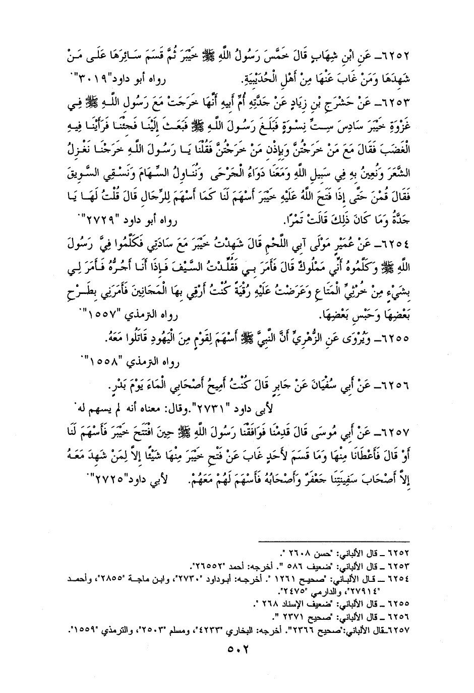 6255 - الزهري: أن النبي - صلى الله عليه وسلم - أسهم لقومٍ من اليهود قاتلوا معه. للترمذي (¬1).