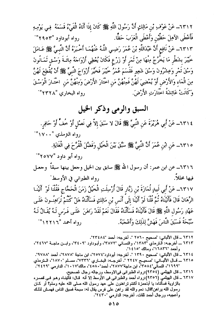 6314 - أبو هريرة رفعه: ((لا سبق إلا في خفٍ أو حافرٍ أو نصلٍ)). لأصحاب السنن (¬1).