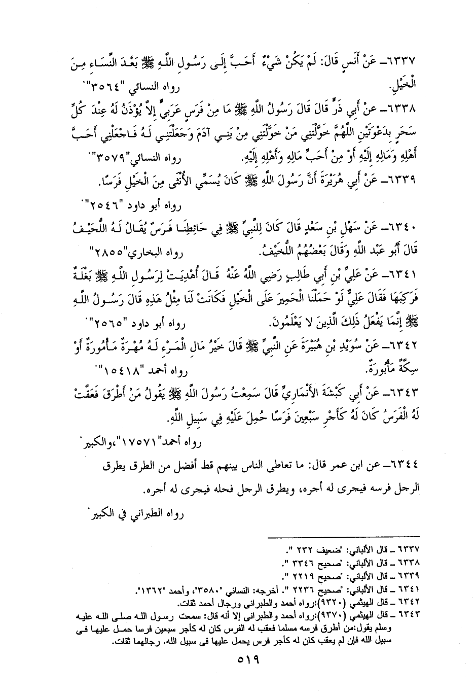 6344 - ابن عمر قال: ما تعاطى الناسُ بينهم قط أفضل من الطرق يطرق الرجل فرسه فيجري له أجره ويطرق الرجلُ فحله فيجري له أجره. للكبير (¬1).