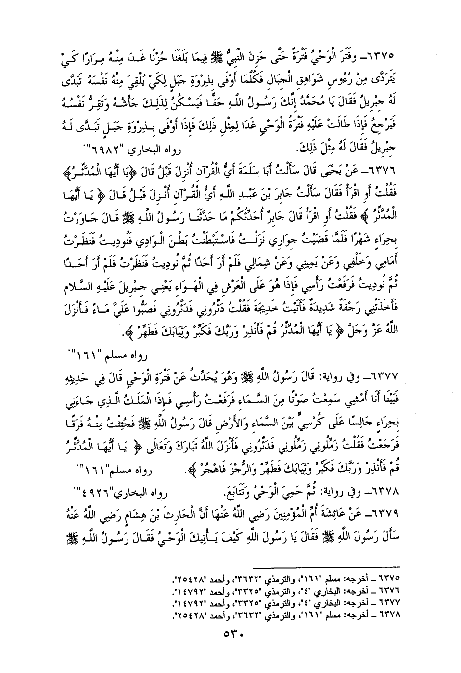 6378 - وفي أخرى: ((ثم حمى الوحي وتتابع)). للشيخين والترمذي (¬1).