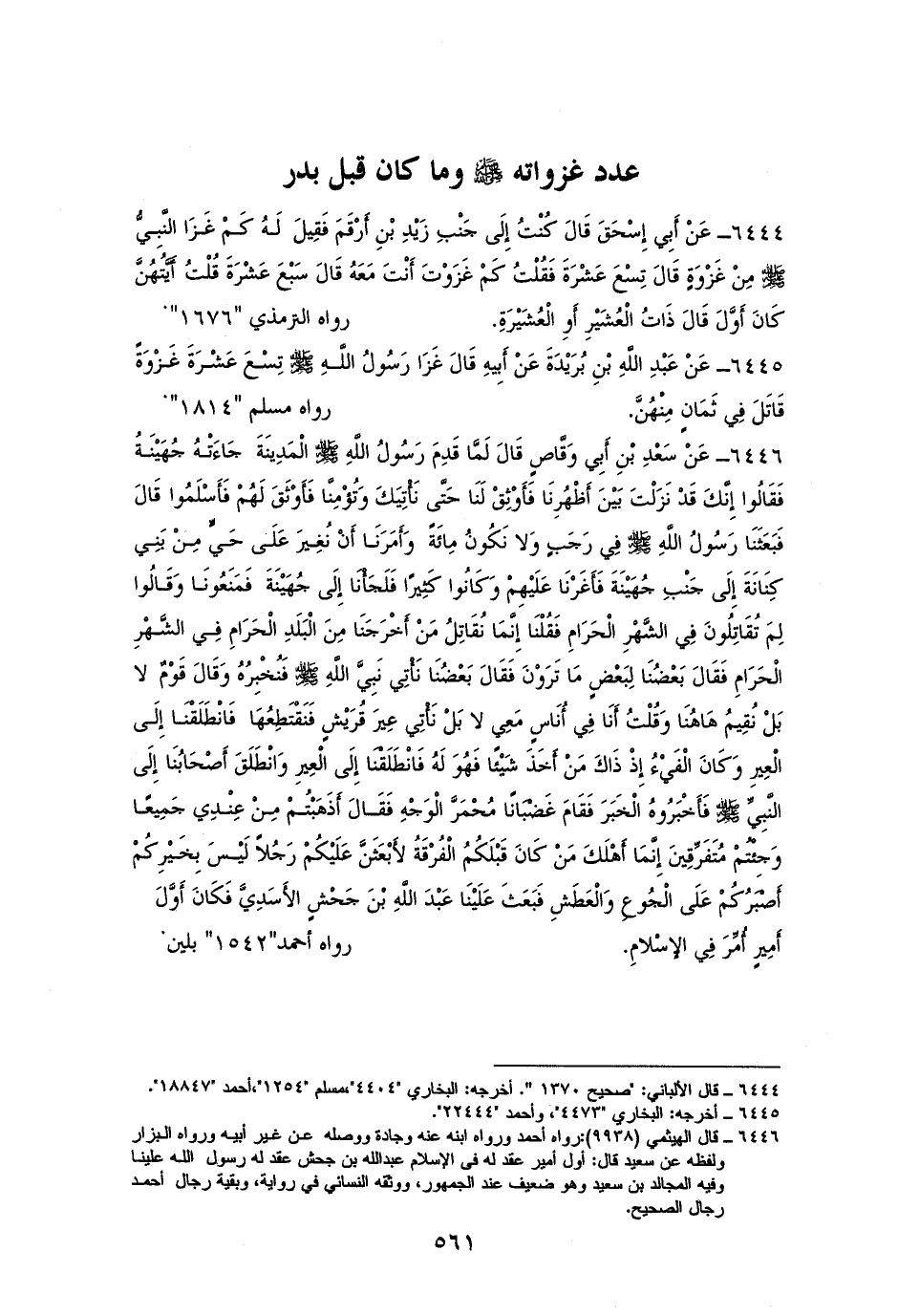 6445 - بريدةُ: أنَّ النبي - صلى الله عليه وسلم - غزا تسع عشرة غزوةً، قاتل في ثمانٍ منهن. للبخاري ومسلمٍ بلفظه (¬1).