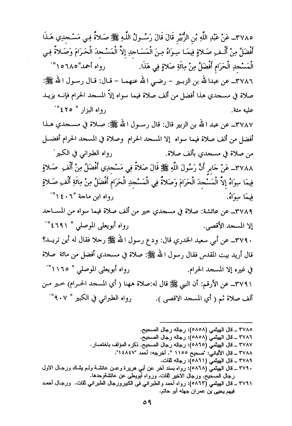 3786 - وللبزار: ((إلاّ المسجد الحرام، فإنه يزيد عليه مائة)) (¬1).