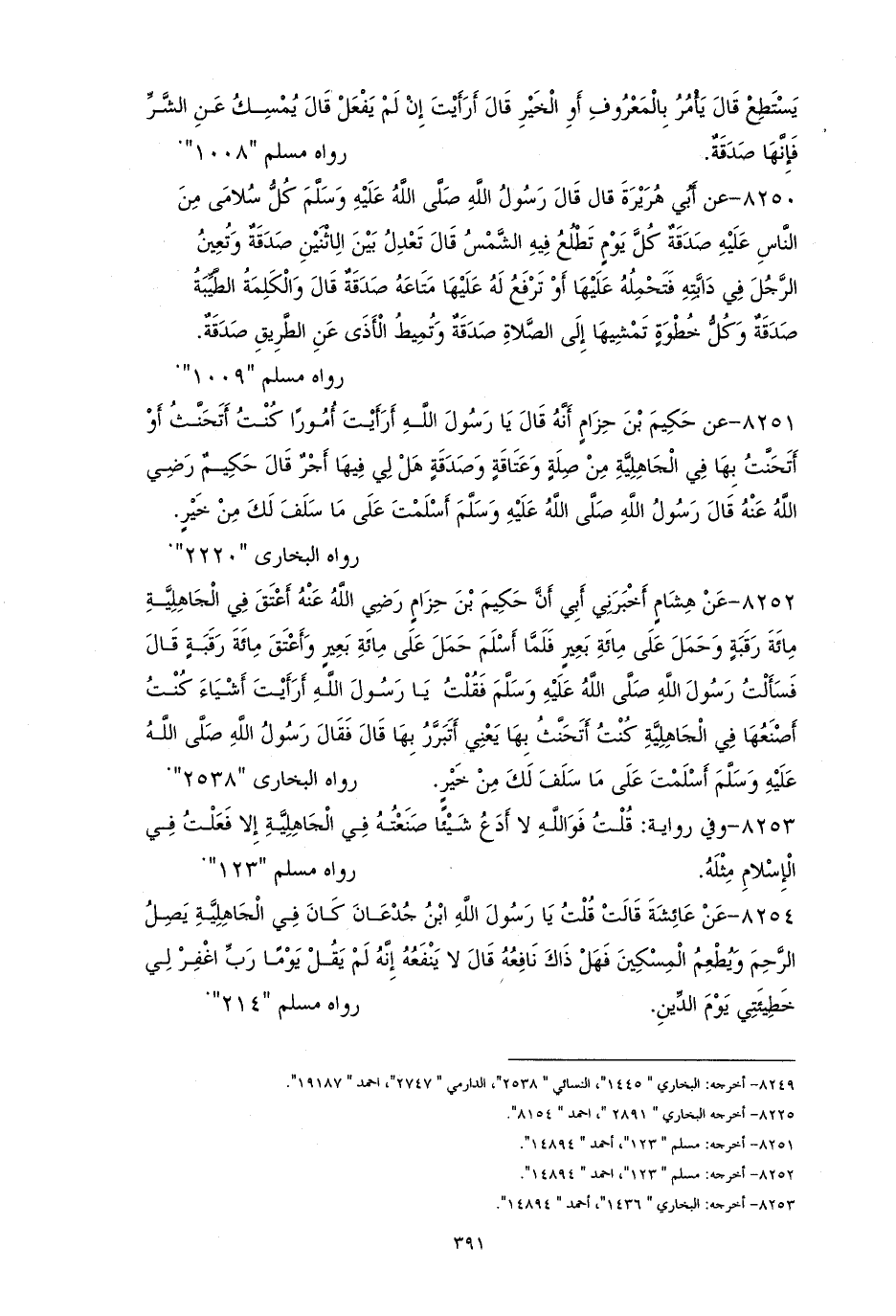 8253 - وفي أخرى: قلت: فوالله لا أدعُ شيئًا صنعتهُ في الجاهلية إلاَّ فعلتُ في الإِسلام مثله. هي للشيخين (¬1).