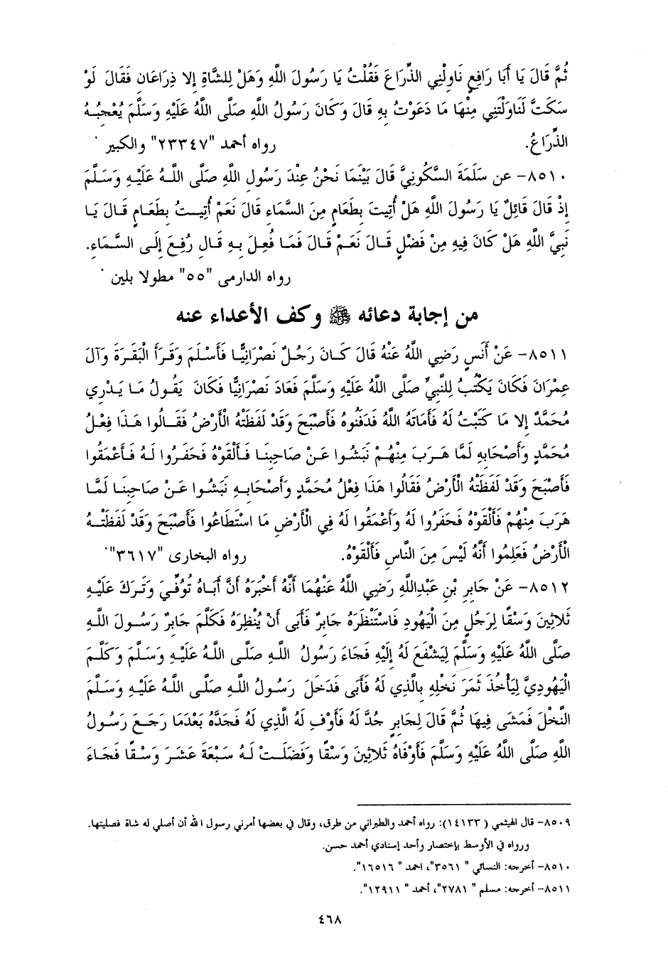 من إجابة دعائه - صلى الله عليه وسلم - وكف الأعداء عنه