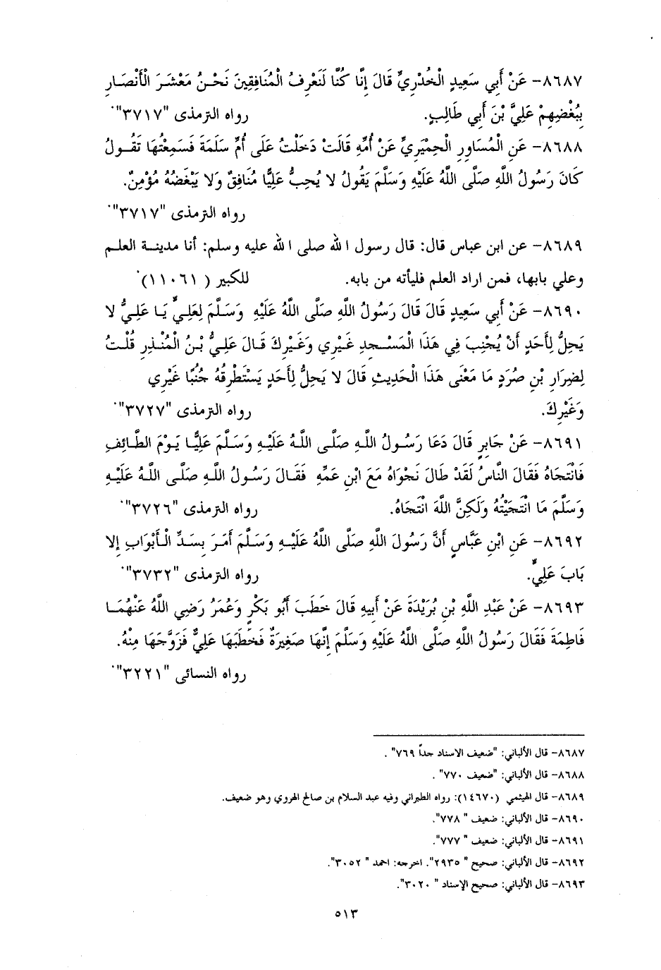 8688 - أم سلمة رفعته: ((لا يحبُّ عليًّا منافقٌ ولا يُبغضُهُ مؤمنٌ)) (¬1).