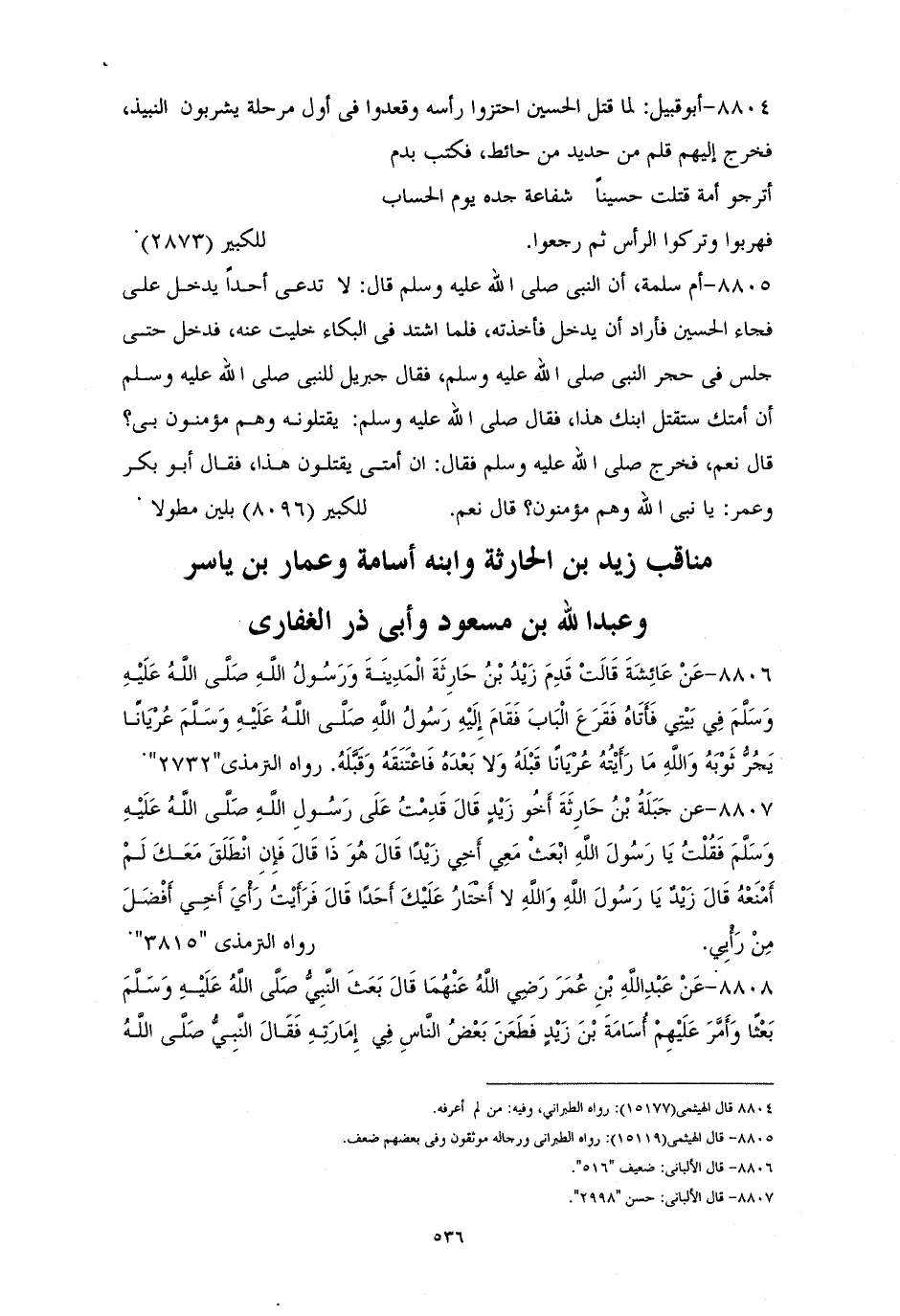 مناقب زيد بن حارثة وابنه أسامة وعمّار بن ياسر وعبد الله بن مسعود وأبى ذر الغفاري - رضي الله عنهم -