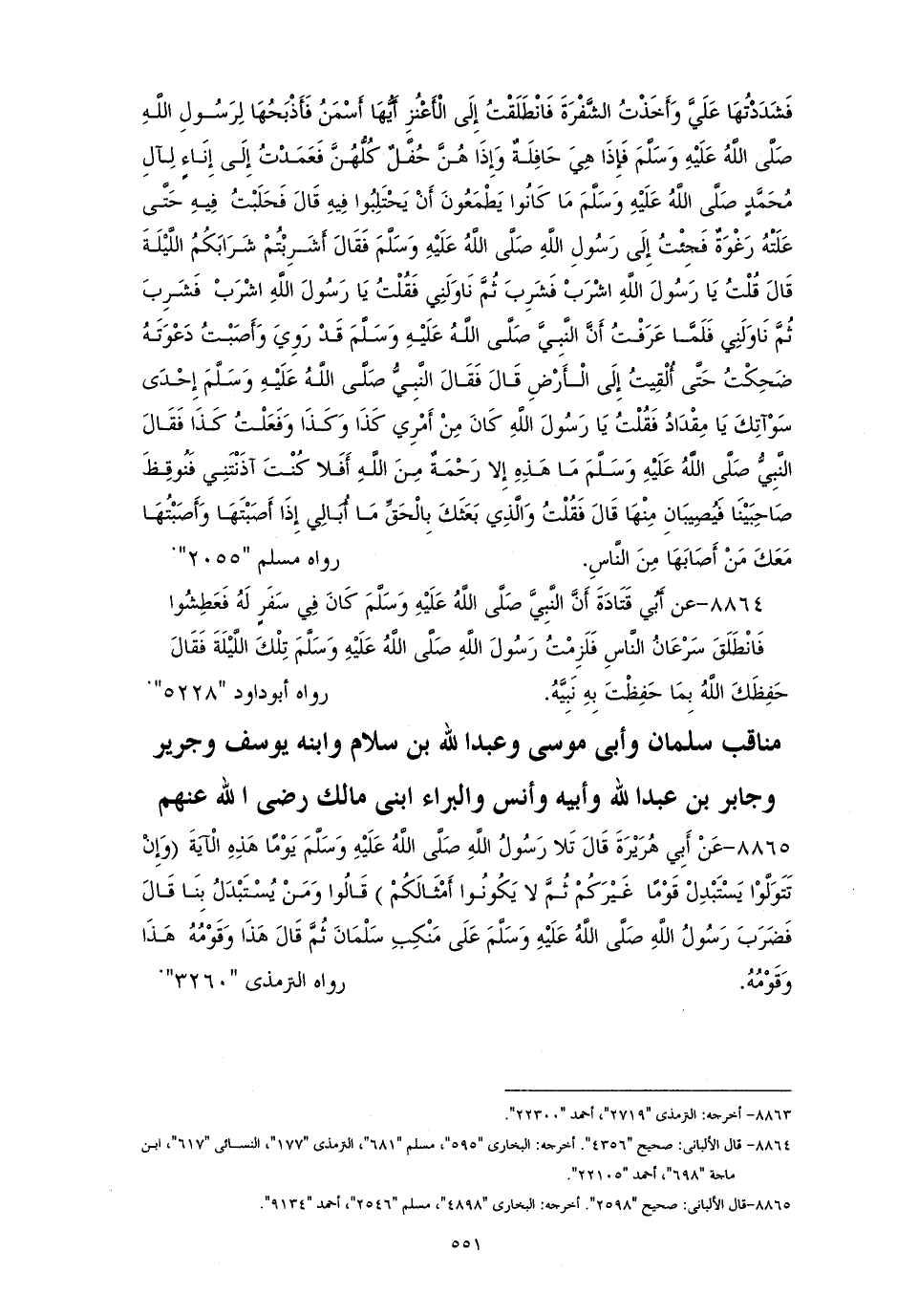 مناقب سلمان وأبي موسى، وعبد الله بن سلام، وابنه يوسف، وجرير، وجابر بن عبد الله، وأبيه، وأنس والبراء ابني مالك - رضي الله عنهم -
