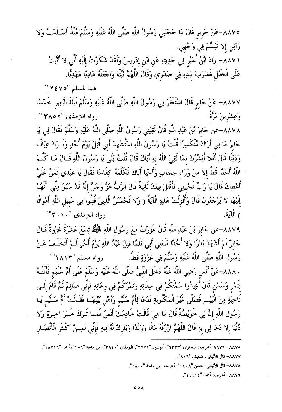 8877 - جابر قال: لقد استغفر لي رسول الله - صلى الله عليه وسلم - ليلة البعير خمسًا وعشرين مرة (¬1).