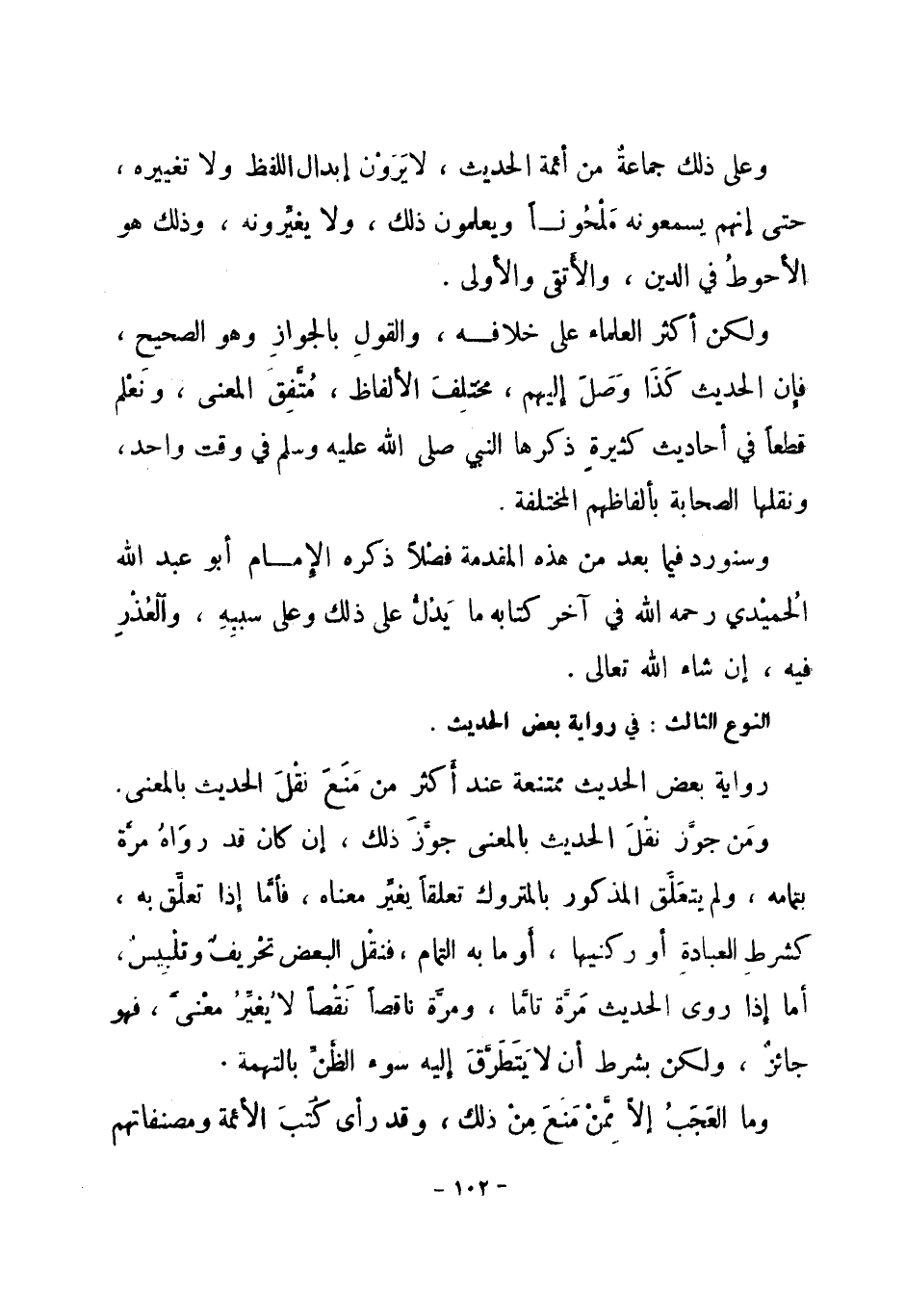 رواية بعض الحديث ممتنعة عند أكثر من منع نقل الحديث بالمعنى.