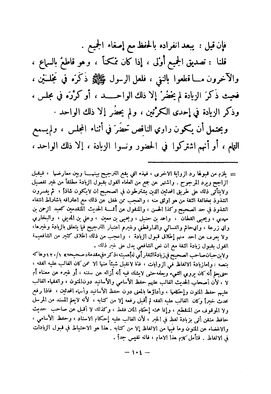 قلنا: تصديق الجميع أولى، إذا كان ممكنًا، وهو قاطع بالسماع، والآخرون ما قطعوا بالنفي، فلعل الرسول - صلى الله عليه وسلم - ذكره في مجلسين، فحيث ذكر الزيادة لم يحضر إلا ذلك الواحد، أو كرَّره في مجلس، وذكر الزيادة في إحدى الكرَّتين، ولم يحضر إلا ذلك الواحد.