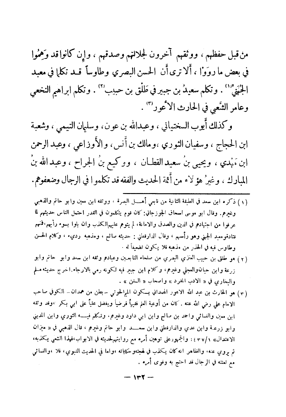 وكذلك أيوب السختياني، وعبد الله بن عون، وسليمان التيمي، وشعبة بن الحجاج، وسفيان الثوري، ومالك بن أنس، والأوزاعي، وعبد الرحمن بن مهدي، ويحيى بن سعيد القطان، ووكيع بن الجراح، وعبد الله بن المبارك، وغير هؤلاء من أئمة الحديث والفقه قد تكلموا في الرجال وضعفوهم.