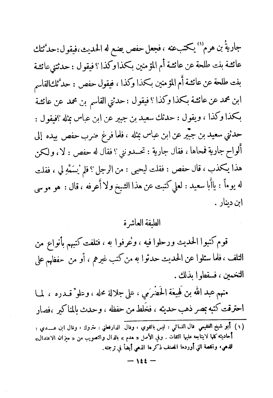 سعيد بن جبير عن ابن عباس بمثله؟ فيقول: حدثني سعيد بن جبير عن ابن عباس بمثله، فلما فرغ ضرب حفص بيده إلى ألواح جارية فمحاها، فقال جارية: تحسدونني؟ فقال له حفص: لا، ولكن هذا يكذب، قال حفص: فقلت ليحيى: من الرجل؟ فلم يُسمِّه لي، فقلت له يومًا: يا أبا سعيد: لعلي كتبت عن هذا الشيخ ولا أعرفه، قال: هو موسى بن دينار.