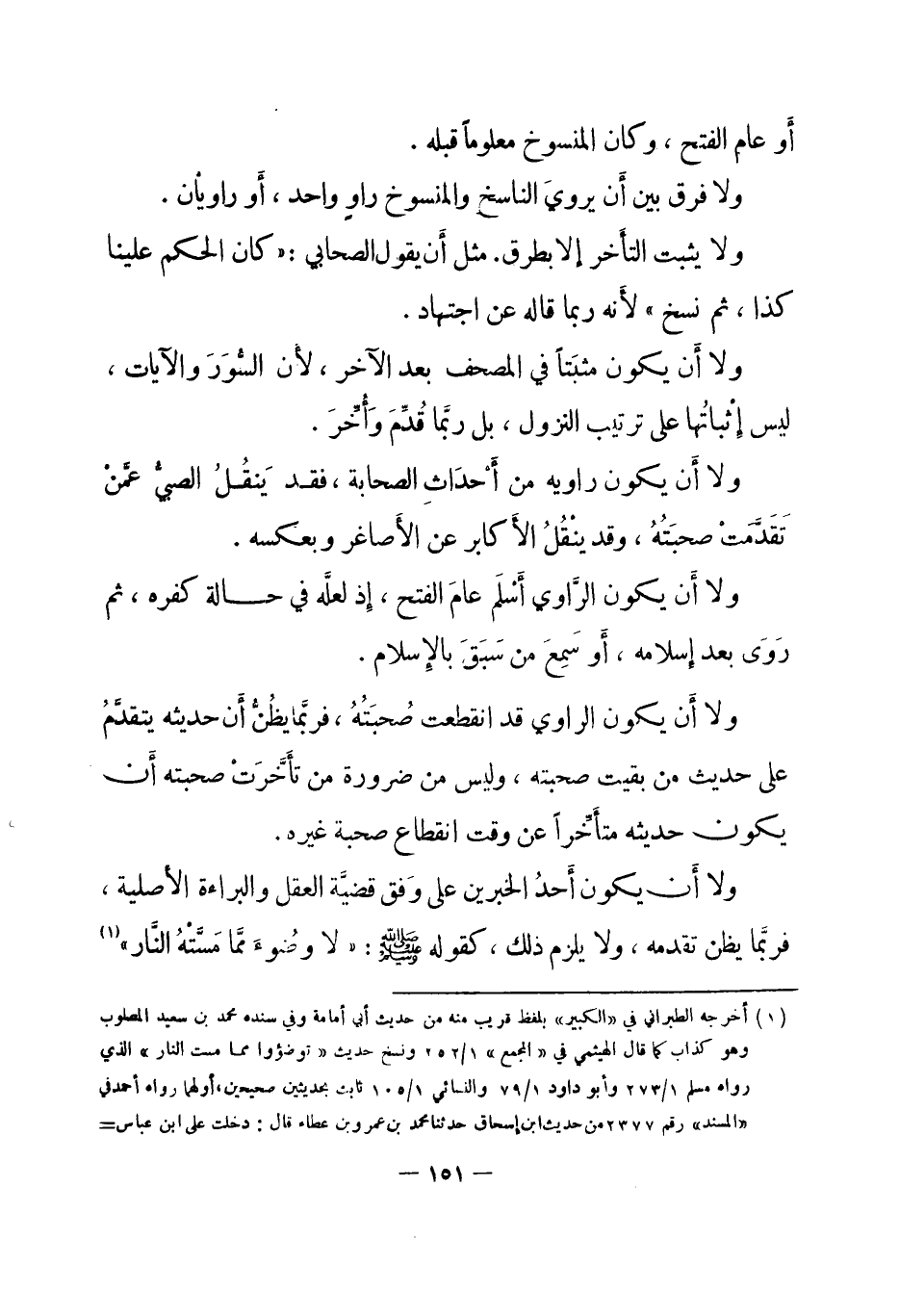 ولا أن يكون الراوي قد انقطعت صحبته، فربما يظن أن حديثه يتقدم على حديث من بقيت صحبته، وليس من ضرورة من تأخرت صحبته أن يكون حديثه متأخرًا عن وقت انقطاع صحبة غيره.