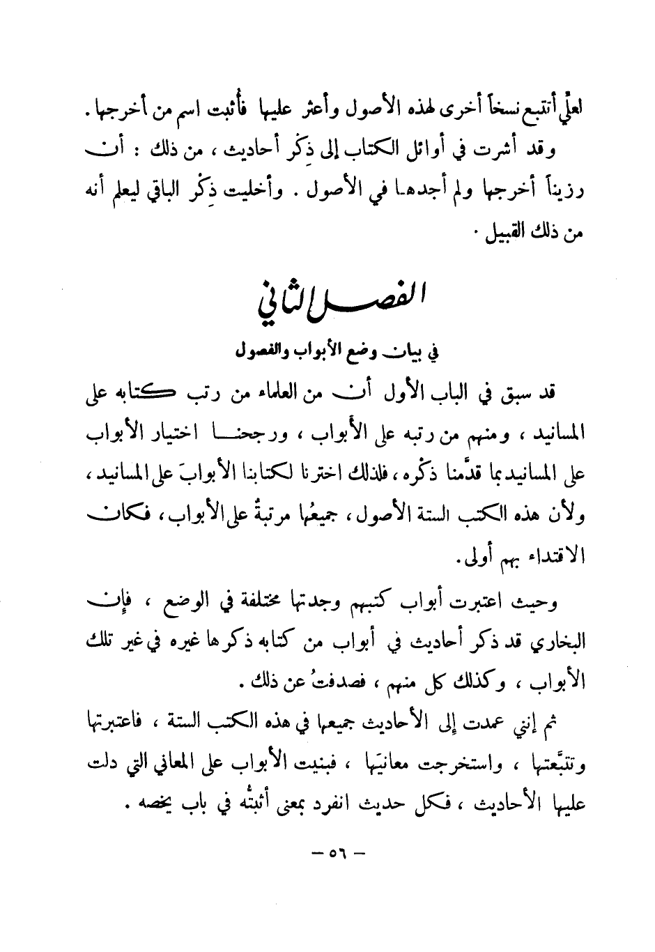 وحيث اعتبرت أبواب كتبهم وجدتها مختلفة في الوضع، فإن البخاري قد ذكر أحاديث في أبواب من كتابه ذكرها غيره في غير تلك الأبواب وكذلك كل منهم، فصدفت عن ذلك،
