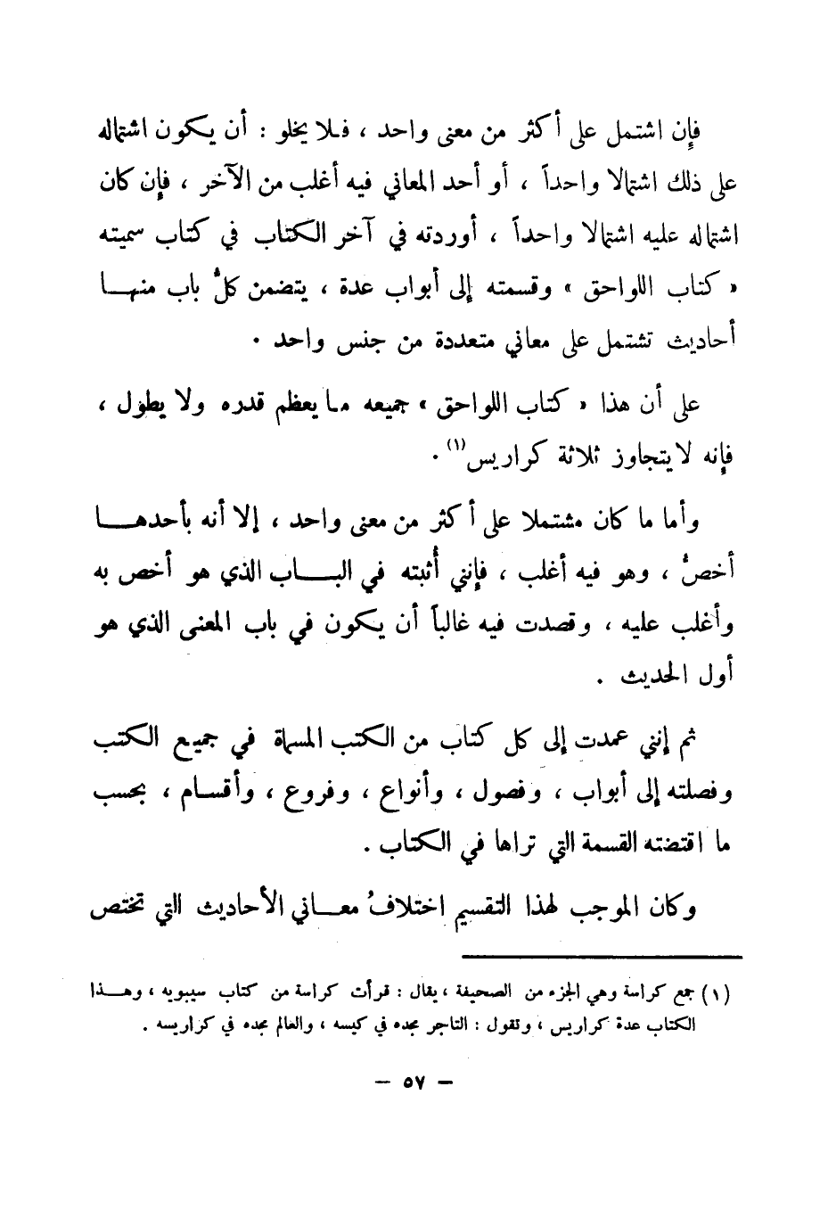 (¬1) جمع كراسة وهي الجزء من الصحيفة، يقال: قرأت كراسة من كتاب سيبويه، وهذا الكتاب عدة كراريس، وتقول: التاجر مجده في كيسه، والعالم مجده في كراريسه.