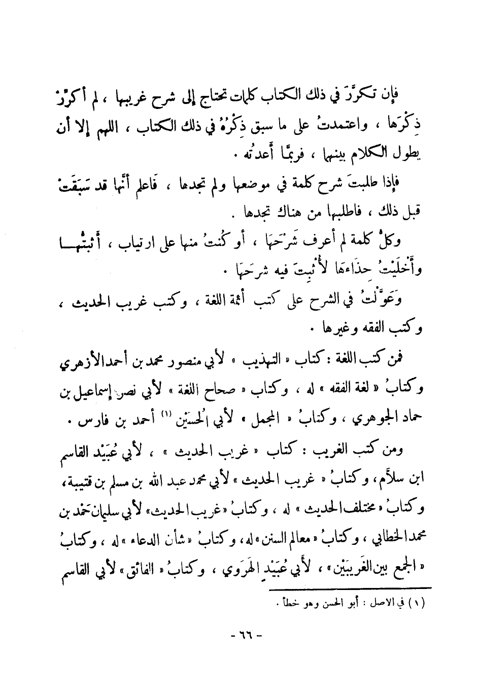 فإن تكرر في ذلك الكتاب كلمات تحتاج إلى شرح غريبها، لم أكرر ذكرها، واعتمدت على ما سبق ذكره في ذلك الكتاب، اللهم ألا أن يطول الكلام بينهما، فربما أعدته.