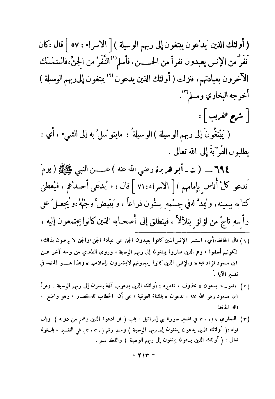 694 - (ت) أبو هريرة - رضي الله عنه -: عن النبي صلى الله عليه وسلم {يومَ نَدعو كلَّ أُناسٍ بإِمامهم} [الإسراء: 71] قال: «يُدْعى أحدُهم، فيُعطى كتابَه بيمينه، ويمُدُّ له في جِسْمِهِ سِتُّون ذراعاً، ويَبْيضُّ وجهْهُ، ويُجعلُ على رأسِه تَاجٌ من لؤلؤٍ يتلألأ، فينطلق إلى أصحابه الذين كانوا يجتمعون إليه -[214]- فيرَونه من بعيد، فيقولون، اللهم ائْتِناَ بهذا، فيأتيهم، فيقول: أبْشرُوا لكُلِّ رجُلٍ منكم مثلُ هذا المتبوع على الهُدَى، وأما الكافر: فيُعْطَى كتابَه بشماله، ويَسوَدُّ وجهه، ويُمدُّ له في جسمه سِتونَ ذراعاً، ويُلبس تاجاً من نارٍ، فإذا رآه أصحابُهُ يقولون: نعوذُ بالله من شر هذا، اللَّهُمَّ لا تأتِنا به، فيأتيهم، فيقولون: اللهم أّخِّرْه، فيقول لهم: أبعَدكُمُ الله، فإنَّ لكلِّ رجلٍ منكم هذا» . أخرجه الترمذي (¬1) .