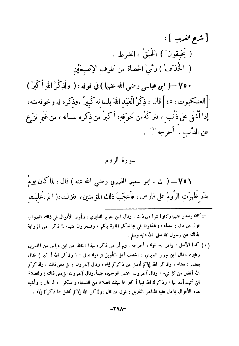 751 - (ت) أبو سعيد الخدري - رضي الله عنه -: قال: لما كان يومُ بدْرٍ ظَهَرَتِ الرُّومُ على فارس، فأعجَبَ ذلك المؤمنين، فنزلت: {الم. غُلِبَتِ -[299]- الرُّوم. في أدْنَى الأرض وهُمْ من بعْدِ غَلَبِهم سيَغْلِبون. في بِضْعِ سنينَ للَّه الأمرُ من قبلُ ومن بعدُ ويومئذٍ يَفْرَحُ المؤمنون} [الروم: 1- 4] قال: ففرح المؤمنون بظهور الروِم على فارس. أخرجه الترمذي.