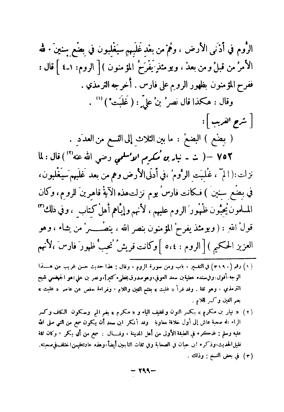 (¬3) رقم (3192) في التفسير، باب ومن سورة الروم، وقال: هذا حديث حسن صحيح غريب لا نعرفه إلا من حديث عبد الرحمن بن أبي الزناد. أقول: وعبد الرحمن بن أبي الزناد صدوق، تغير حفظه لما قدم بغداد وكان فقيهاً.
