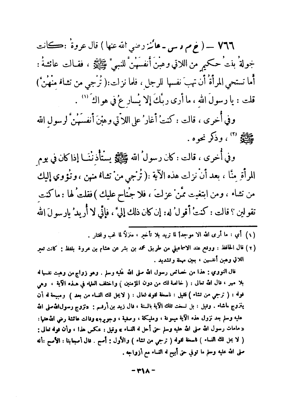 (¬3) البخاري 8 / 404 في تفسير سورة الأحزاب، باب قوله {ترجي من تشاء منهن} ، وفي النكاح، باب هل للمرأة أن تهب نفسها لأحد، ومسلم رقم (1464) في الرضاع، باب جواز هبتها نوبتها لضرتها، وأبو داود رقم (2136) في النكاح، باب في القسم بين النساء، والنسائي 6 / 54 في النكاح، باب ذكر أمر رسول الله صلى الله عليه وسلم في النكاح وأزواجه.