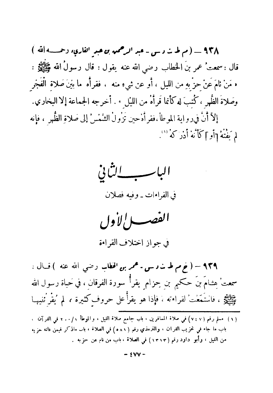 (¬1) مسلم رقم (747) في صلاة المسافرين، باب جامع صلاة الليل، والموطأ 1 / 200 في القرآن، باب ما جاء في تحزيب القرآن، والترمذي رقم (581) في الصلاة، باب ما ذكر فيمن فاته حزبه من الليل، وأبو داود رقم (1313) في الصلاة، باب من نام عن حزبه.