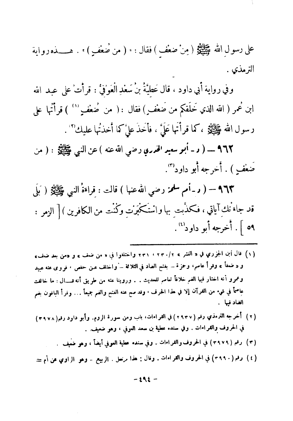 962 - (د) أبو سعيد الخدري - رضي الله عنه -: عن النبي صلى الله عليه وسلم {مِنْ ضَعْفٍ} . أخرجه أبو داود (¬1) .
