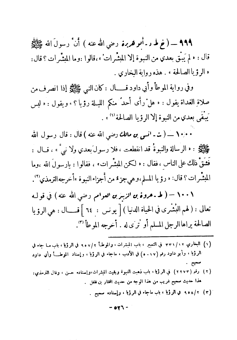 (¬1) البخاري 12 / 331 في التعبير، باب المبشرات، والموطأ 2 / 957 في الرؤيا، باب ما جاء في الرؤيا، وأبو داود رقم (5017) في الأدب، ما جاء في الرؤيا، وإسناد الموطأ وأبي داود صحيح.