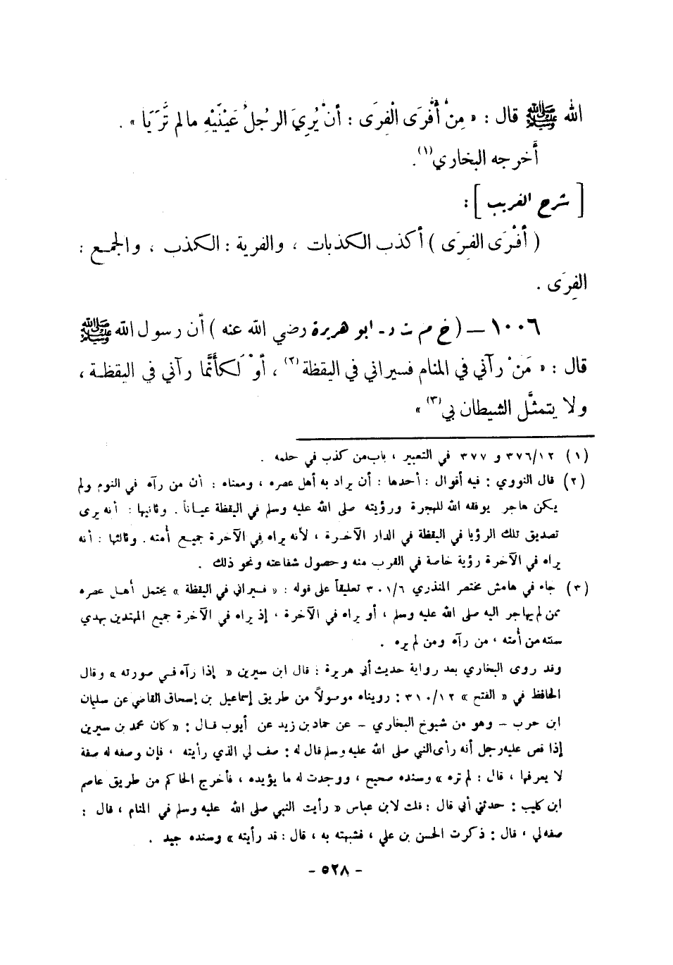 (¬3) مسلم رقم (2266) في الرؤيا، باب قول النبي صلى الله عليه وسلم: " من رأني في المنام فقد رآني "، والترمذي رقم (2281) في الرؤيا، باب في تأويل الرؤيا ما يستحب منها وما يكره، وأبو داود رقم (5023) في الأدب، باب ما جاء في الرؤيا.