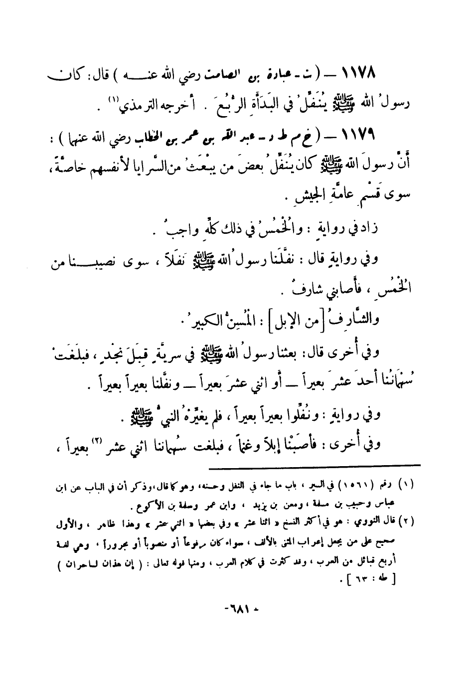 1179 - (خ م ط د) عبد الله بن عمر بن الخطاب - رضي الله عنهما -: أَنَّ رسولَ اللهِ صلى الله عليه وسلم كان يُنَفِّلُ بعضَ من يبْعَثُ من السَّرايا لأنفسهم خاصَّة، سوى قَسْمِ عامَّةِ الجيشِ.