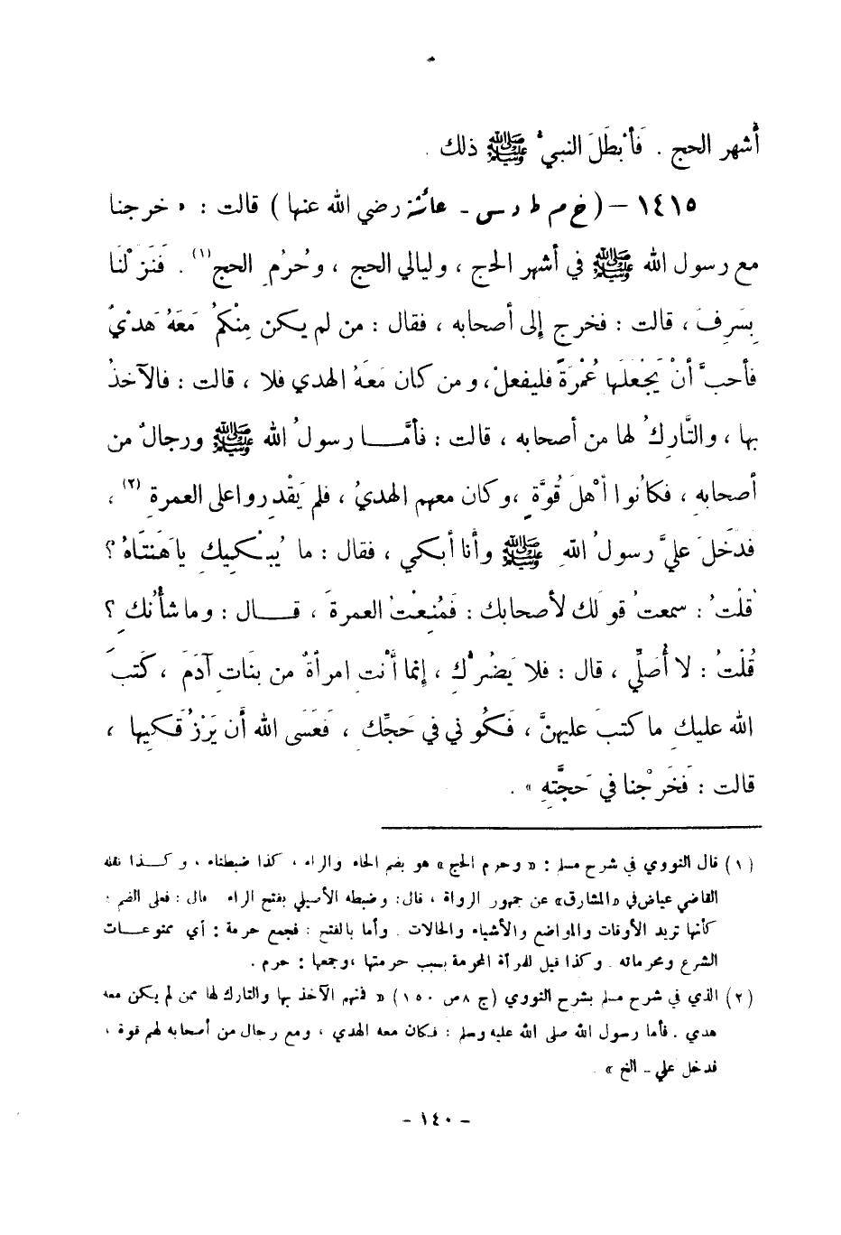 (¬1) قال النووي في " شرح مسلم ": " وحرم الحج " هو بضم الحاء والراء كذا ضبطناه، وكذا نقله القاضي عياض في " المشارق " عن جمهور الرواة، قال: وضبطه الأصيلي بفتح الراء، قال: فعلى الضم كأنها تريد الأوقات والمواضع والأشياء والحالات، وأما بالفتح: فجمع حرمة: أي ممنوعات الشرع ومحرماته، وكذلك قيل للمرأة المحرمة بسبب حرمتها، وجمعها حرم.