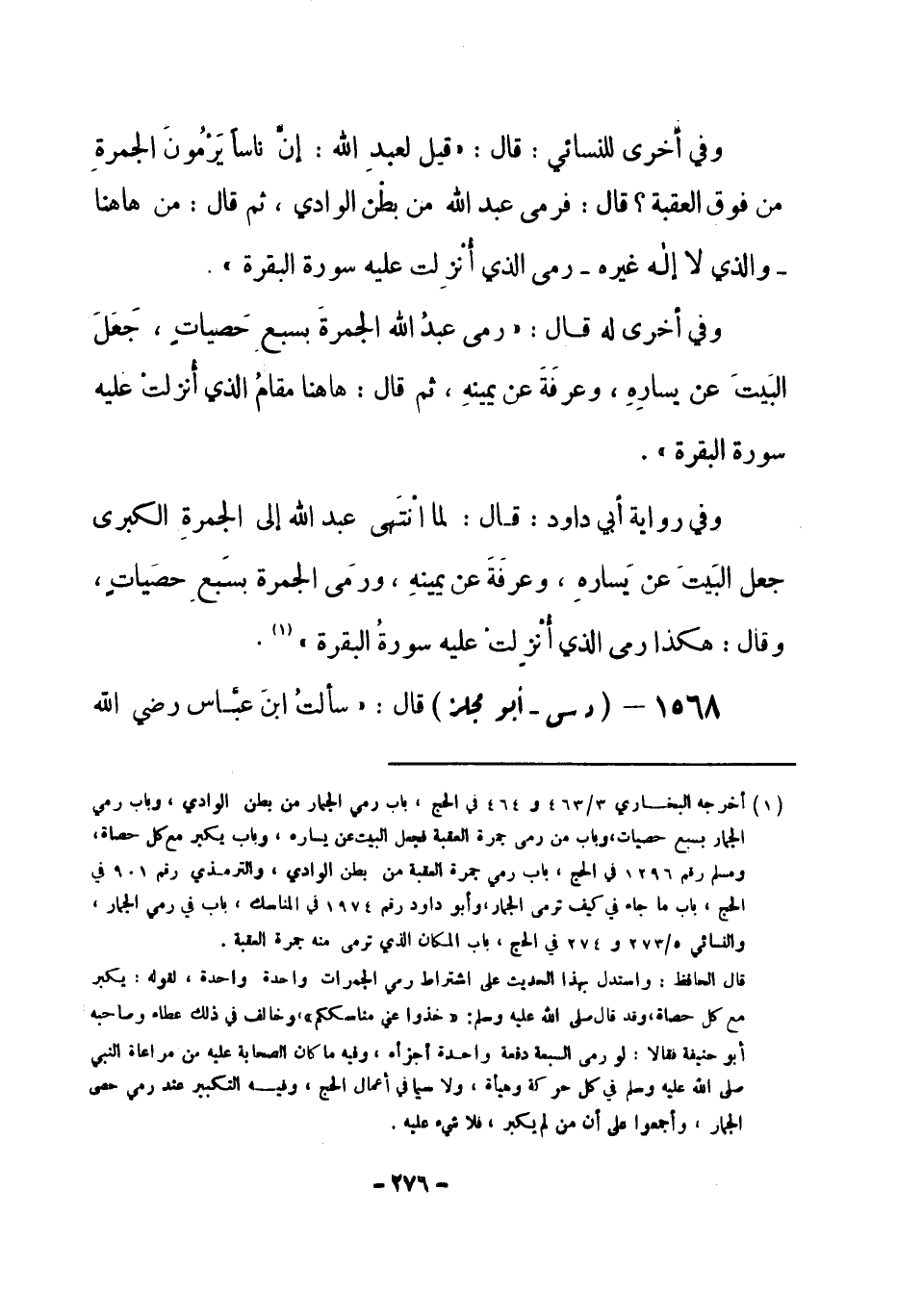 1568 - (د س) أبو مجلز قال: «سألتُ ابنَ عبَّاس -رضي الله -[277]- عنهما- عن شيءٍ من أمرِ الجمار؟ فقال: ما أدري: رماها رسول الله -صلى الله عليه وسلم- بستٍ، أو سبعٍ» . أخرجه أبو داود والنسائي (¬1) .