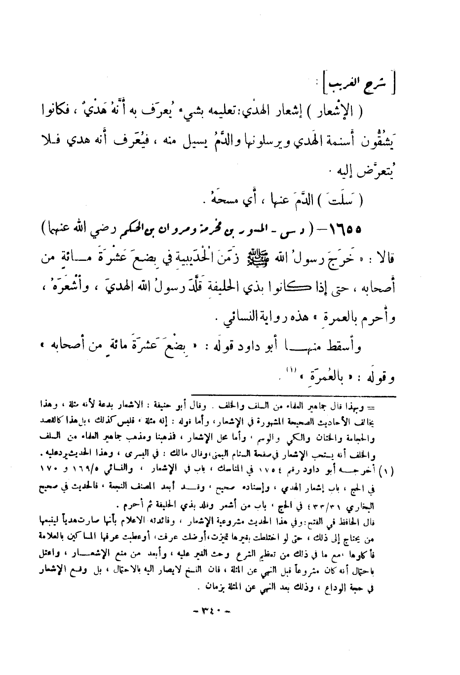 (¬1) أخرجه أبو داود رقم (1754) في المناسك، باب في الإشعار، والنسائي 5 / 169 و 170 في الحج، باب إشعار الهدي، وإسناده صحيح، وقد أبعد المصنف النجعة، فالحديث في صحيح البخاري 3 / 433 في الحج، باب من أشعر وقلد بذي الحليفة ثم أحرم.
