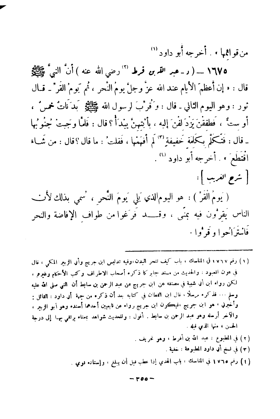 S (يوم القر) : هو اليوم الذي يلي يوم النحر، سمي بذلك، لأن الناس يقرون فيه بمنى، وقد فرغوا من طواف الإفاضة والنحر فاستراحوا، وقرُّوا. -[356]-
