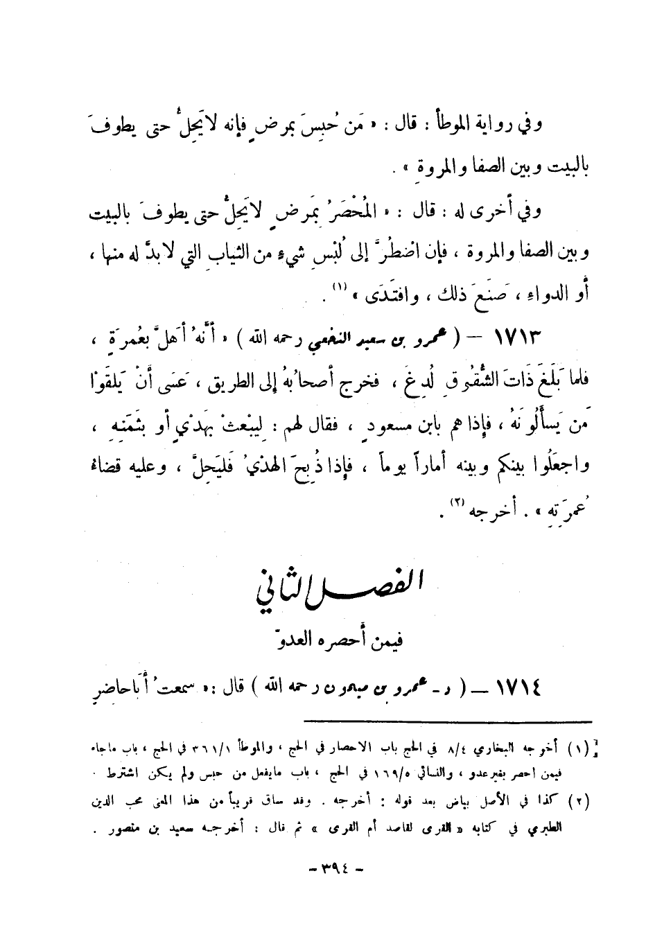 الفصل الثاني: فيمن أحصره العدو