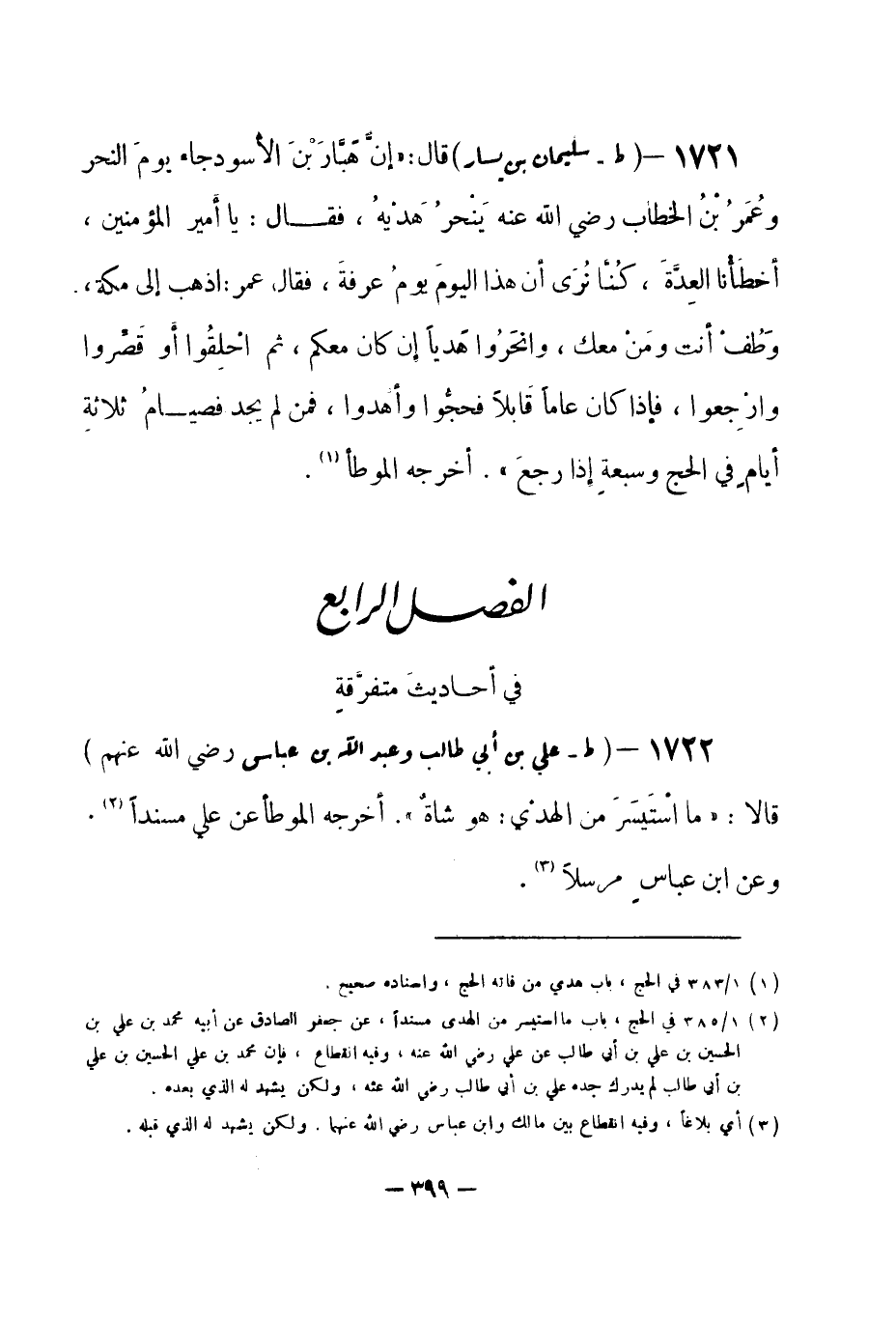 1721 - (ط) سليمان بن يسار قال: «إنَّ هَبَّارَ بْنَ الأسود جاء يومَ النحر وعُمَرُ ابْنُ الخطاب - رضي الله عنه - يَنْحرُ هَدْيهُ، فقال: يا أمير المؤمنين، أخطَأْنا العِدَّةَ، كُنَّا نُرَى أن هذا اليومَ يومُ عرفة، فقال عمر: اذهب إلى مكة، وطُفْ أنت ومَنْ معك، وانحَرُوا هَدياً إن كان معكم، ثم احْلِقُوا أو قَصِّروا وارْجِعوا، فإذا كان عاماً قَابلاً فحجُّوا وأهدوا، فمن لم يجد فصيامُ ثلاثةِ أيامٍ في الحج وسبعةٍ إذا رجعَ» . أخرجه الموطأ (¬1) .