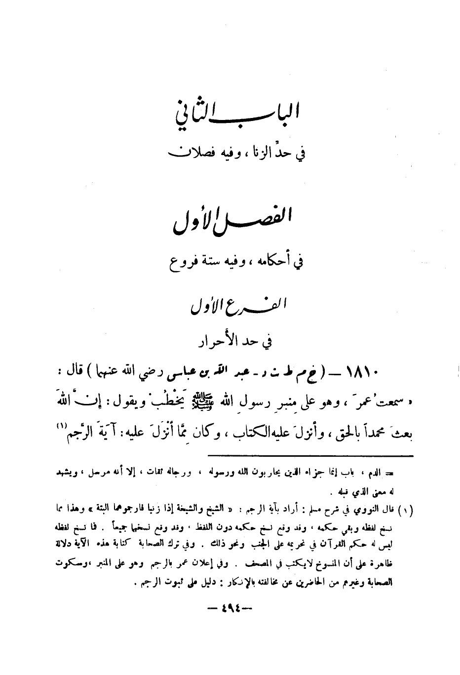 الباب الثاني: في حد الزنا، وفيه فصلان