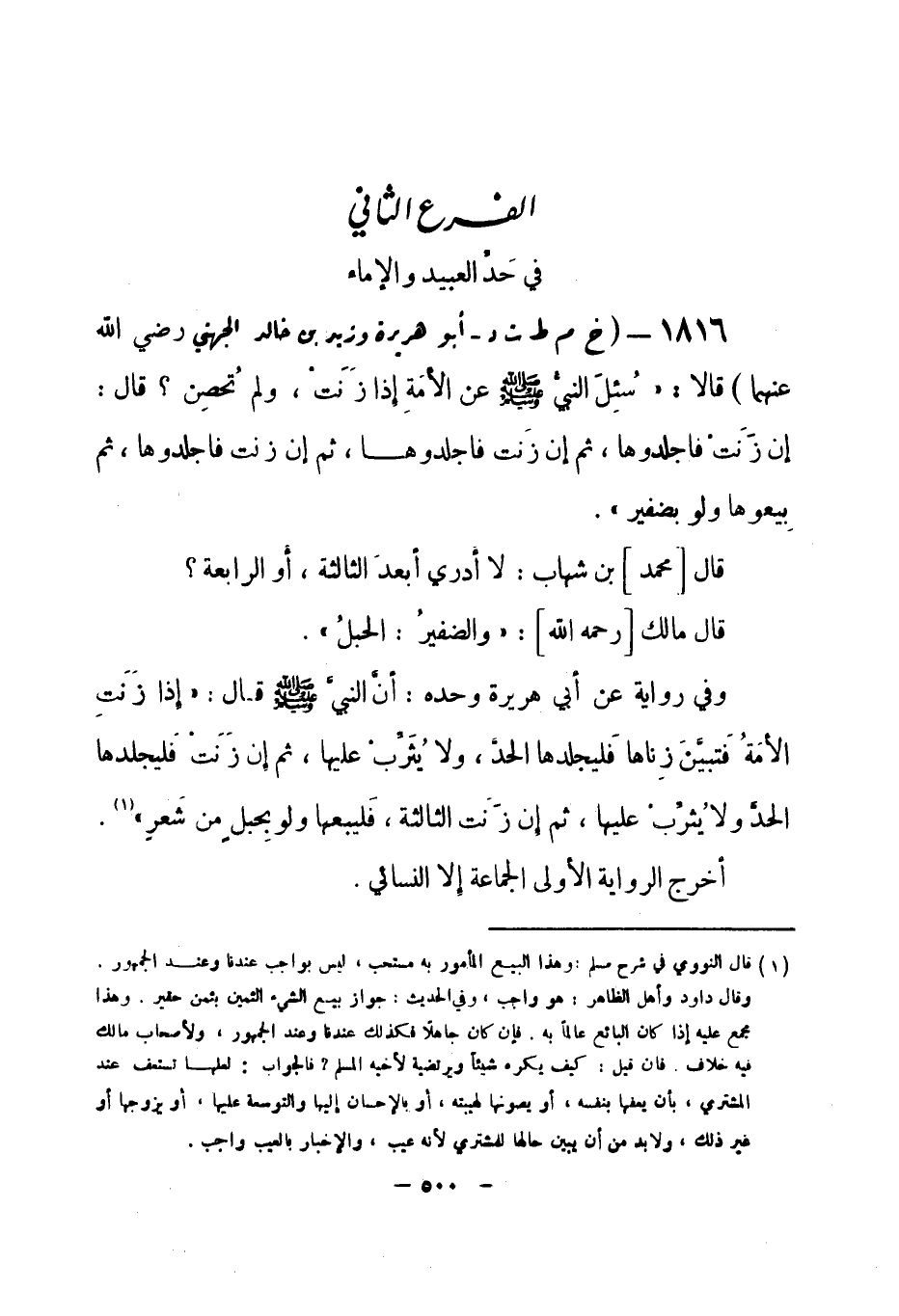 (¬2) أخرجه البخاري 12 / 143 و 144 في المحاربين، باب إذا زنت الأمة، وفي البيوع، باب بيع العبد الزاني، وباب بيع المدبر، وفي العتق، باب كراهية التطاول على الرقيق، ومسلم رقم (1703) في الحدود، باب رجم اليهود أهل الذمة في الزنا، والموطأ 2 / 826 في الحدود، باب جامع ما جاء في حد الزنا، والترمذي رقم (1440) في الحدود، باب ما جاء في إقامة الحد على الإماء، وأبو داود رقم (4469) في الحدود، باب في الأمة تزني ولم تحصن، ورقم (4470) و (4471) .