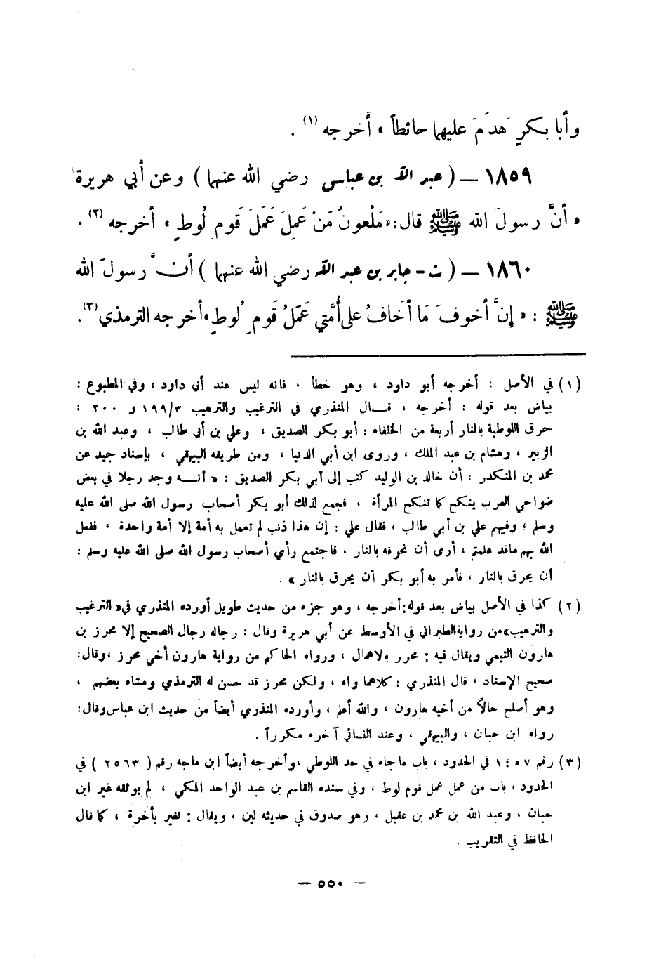 1859 - () عبد الله بن عباس -رضي الله عنهما- وعن أبي هريرة: أنَّ رسولَ الله -صلى الله عليه وسلم- قال: «مَلْعونٌ مَنْ عَمِلَ عَمَل قَومِ لُوطٍ» . أخرجه (¬1) .
