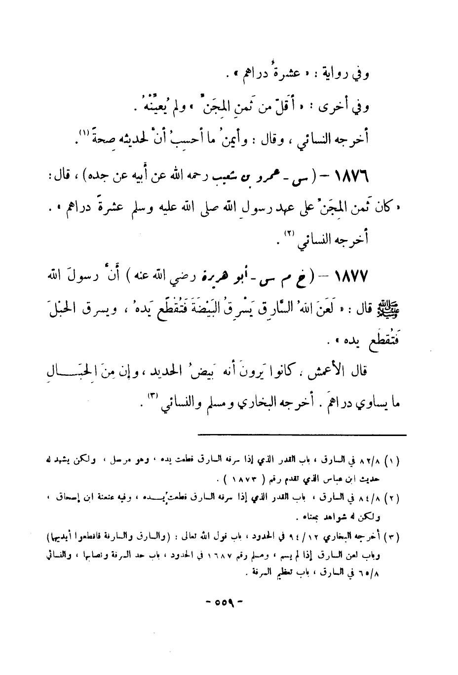 1877 - (خ م س) أبو هريرة - رضي الله عنه - أَنَّ رسولَ الله -صلى الله عليه وسلم- قال: «لَعَنَ الله السَّارِق يَسْرِقُ البَيْضَةَ فَتُقْطَع يَدهُ، ويسرق الحبْلَ فَتُقطع يده» .
