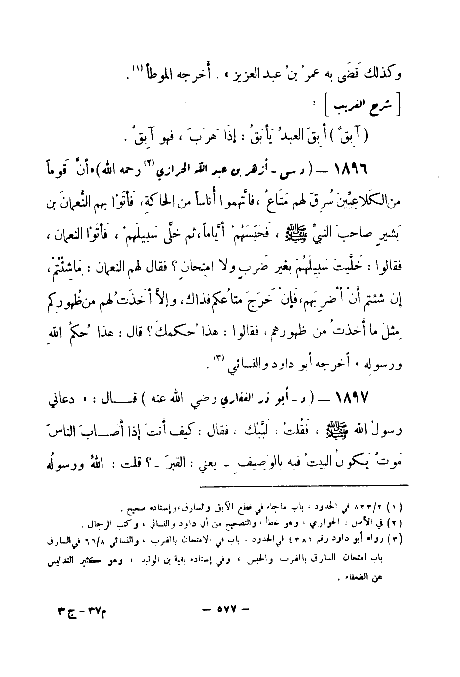 (¬2) رواه أبو داود رقم (4382) في الحدود، باب في الامتحان بالضرب، والنسائي 8 / 66 في السارق، باب امتحان السارق بالضرب والحبس، وفي إسناده بقية بن الوليد، وهو كثير التدليس عن الضعفاء.
