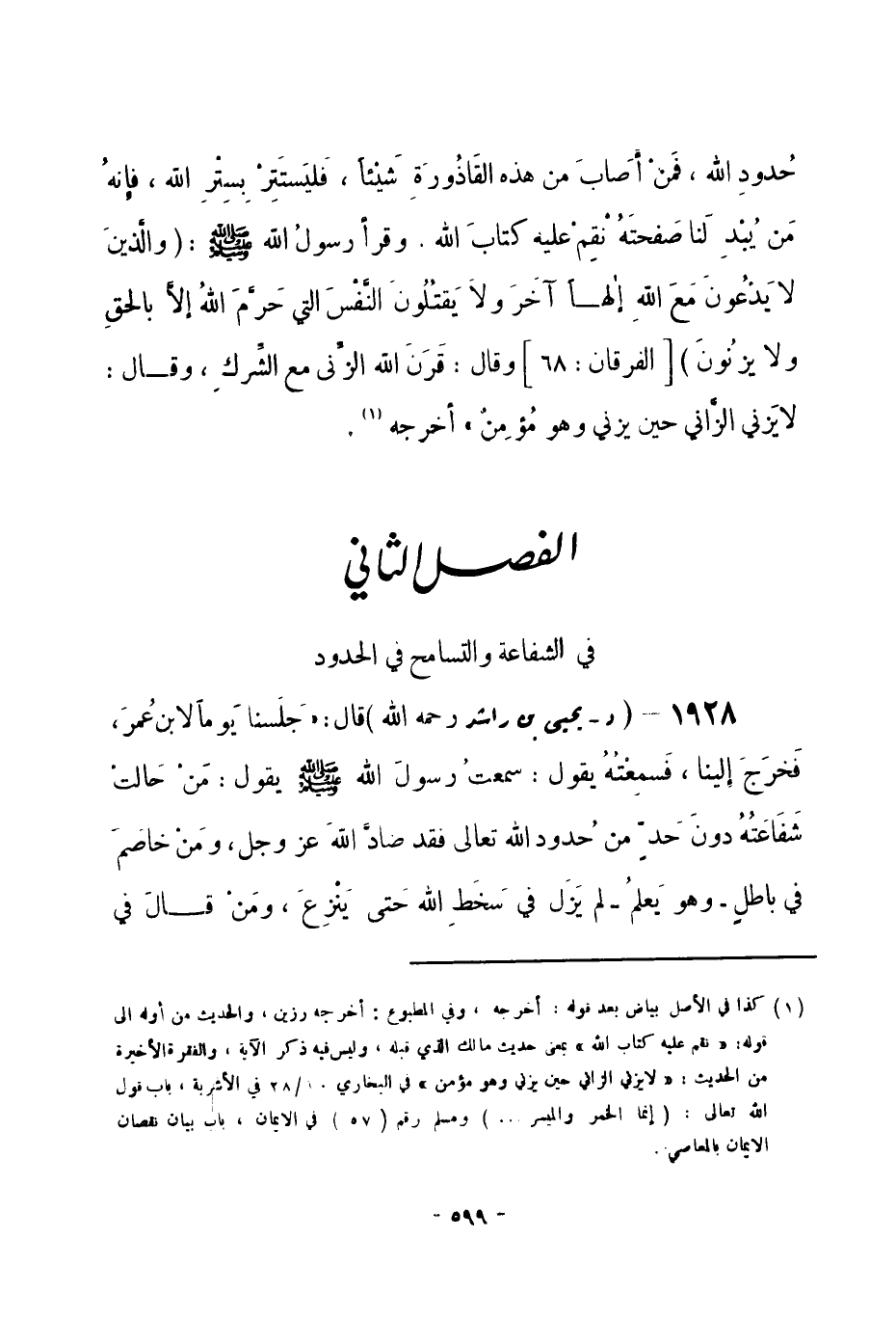 الفصل الثاني: في الشفاعة والتسامح في الحدود