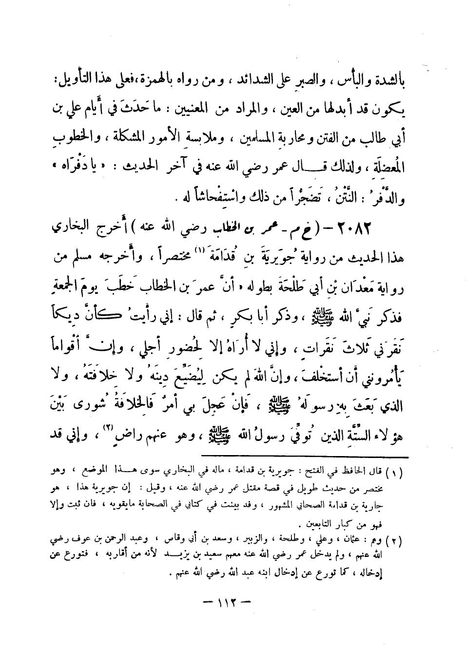 (¬1) قال الحافظ في " الفتح ": جويرية بن قدامة، ماله في البخاري سوى هذا الموضع، وهو مختصر من حديث طويل في قصة مقتل عمر رضي الله عنه، وقيل: إن جويرية هذا، هو جارية بن قدامة الصحابي المشهور، وفد بينت في كتابي في الصحابة ما يقويه، فإن ثبت وإلا فهو من كبار التابعين.