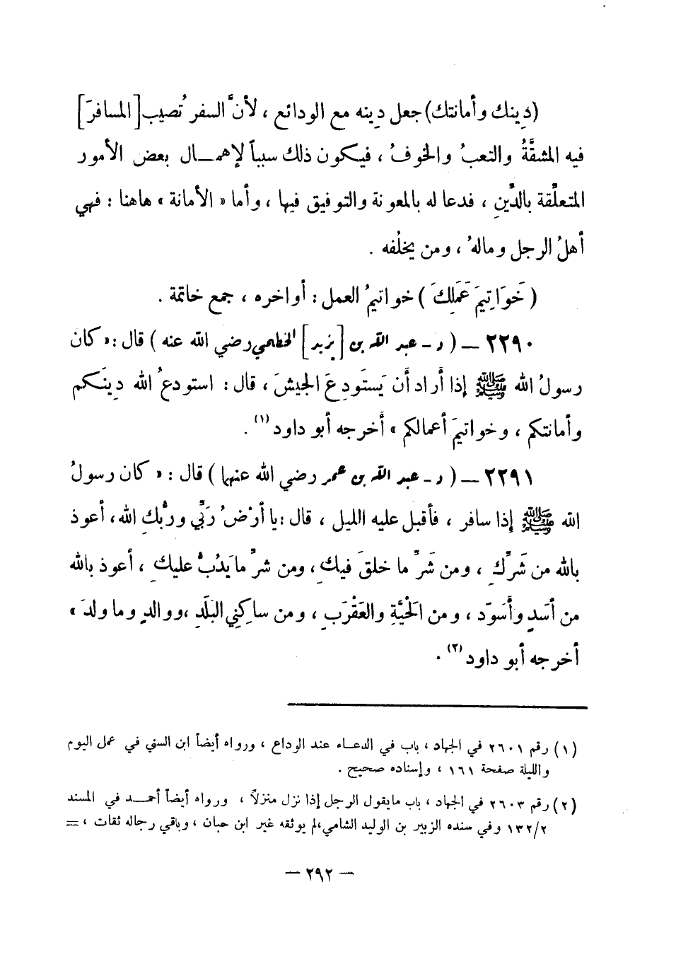 (¬1) رقم (2601) في الجهاد، باب في الدعاء عند الوداع، ورواه أيضاً ابن السني في " عمل اليوم والليلة " صفحة 161، وإسناده صحيح.