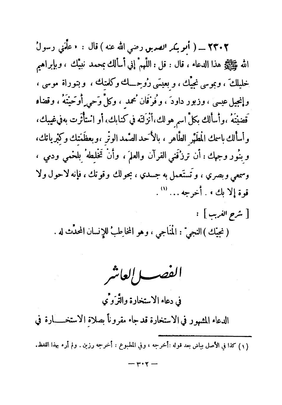 الدعاء المشهور في الاستخارة وقد جاء مقروناً بصلاة الاستخارة في -[303]- حديث واحد، فلذلك ذكرناه في «كتاب الصلاة» من حرف «الصاد» وقد ذكرنا هاهنا ما وجدناه منها خارجاً عن ذلك.